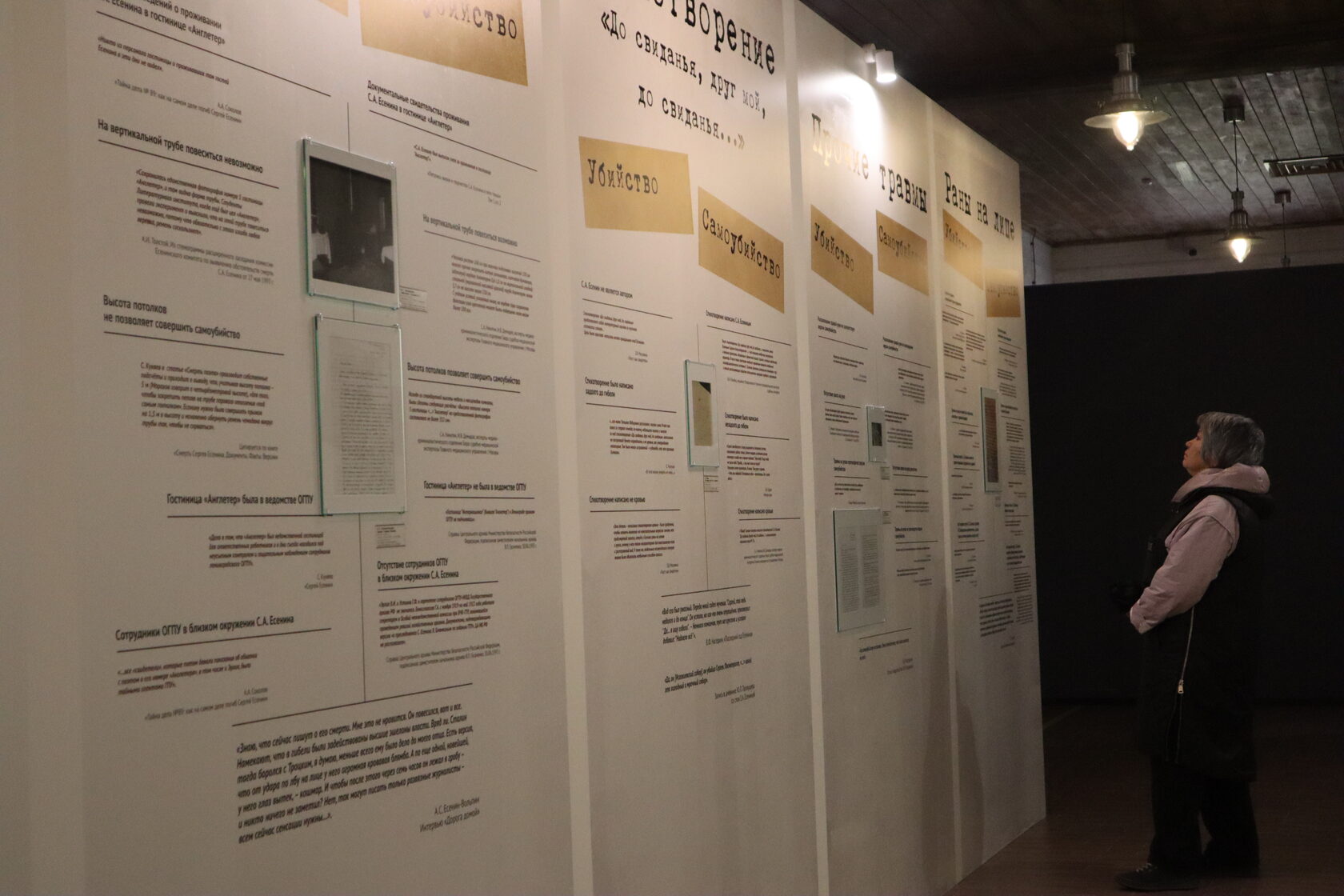 Реконструируя события, произошедшие в ночь с 27 на 28 декабря 1925 года, приверженцы вариантов убийства поэта приводят свои доводы, а сторонники версии самоубийства делают совершенно противоположные выводы. Исследователи по сей день продолжают поиски доказательств, однако неоспоримых аргументов в пользу той или иной версии не предоставлено. Выставка не дает однозначного ответа, что же произошло в Англетере ровно сто лет назад, а только знакомит с малоизвестными документальными свидетельствами. Поэтому каждый посетитель может сделать вывод сам для себя.